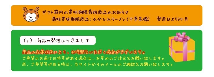 | 賞味期限 | 最短賞味期限商品:製造日より90日 |