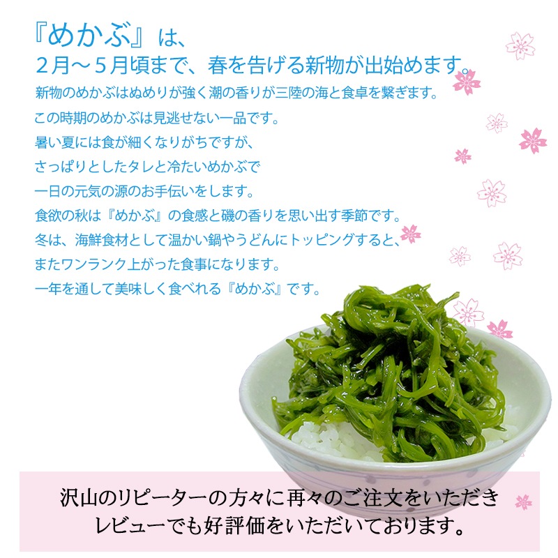 三陸特産の若布から採れためかぶと丸繁特製タレ付きの一品。