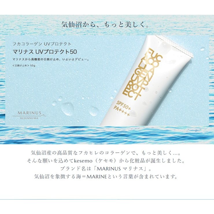 日焼け止め マリナスUVプロテクト50 送料無料 (55g) KESEMO MARINUS 気仙沼 フカヒレ コラーゲン 美容 コスメ ケセモ マリナス