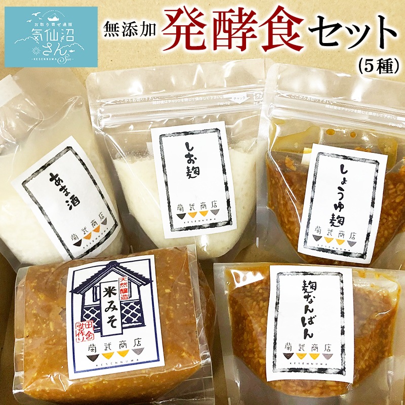 無添加 発酵食セット (甘酒・塩麹・しょうゆ麹・こうじ南蛮・米味噌) 菊武商店 調味料 発酵食品 保存料 甘味料 不使用 みそ 醤油 酵素 贈答 ギフト