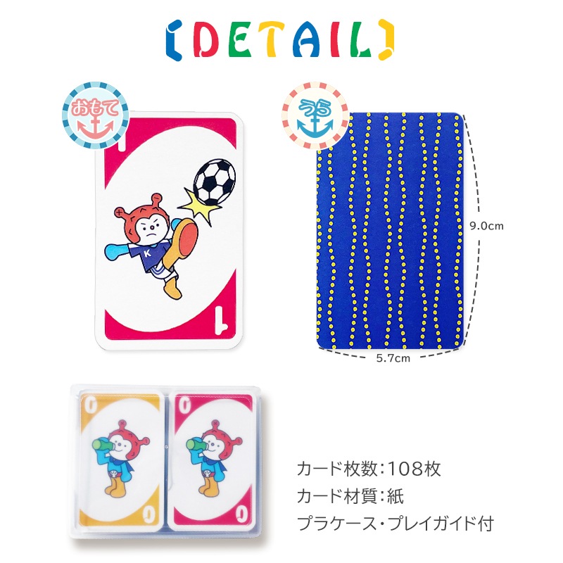 | 内容量 | 【内容量】 1セット(108枚) プレイガイド付 【サイズ・材質】 [カード] サイズ:約縦9.0cm×横5.7cm 材質:紙 [ケース] サイズ:約縦9.7cm×横12.2cm×高さ2.4cm 材質:プラスチック |