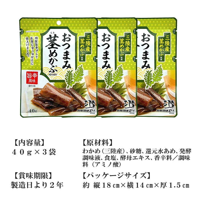 三陸産 おつまみ茎めかぶ 旨辛風味 送料無料 (40g×3袋入 ※ポスト投函) ほてい ピリ辛 おつまみ おやつ 間食 ヘルシー